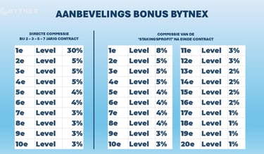 Je bent absoluut niet verplicht om de voordelen van Bytnex verder aan te bevelen. Maar als je dat wel doet zijn de volgende bonussen/commissies goed om te weten:
